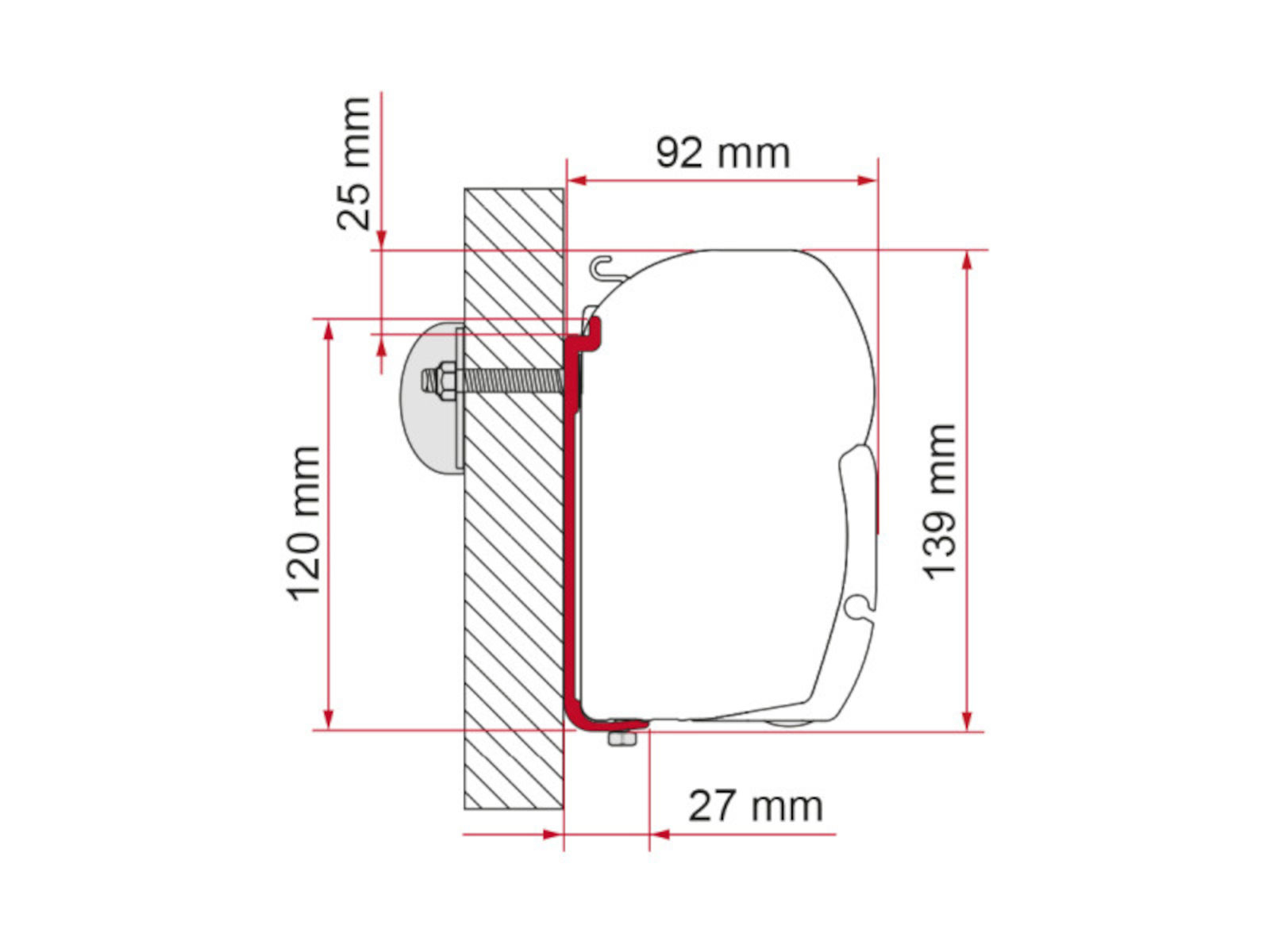 Kit S 120 is 1 x 12cm long bracket, installation bolts, backing plate and plate cover and is compatible with all generations of Fiamma F45 awning.