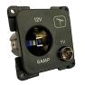 12 Volt and TV Socket for C-Line modular socket system. Includes Cigarette style 12 Volt socket and Coaxial cable socket for TV or aerial connection.