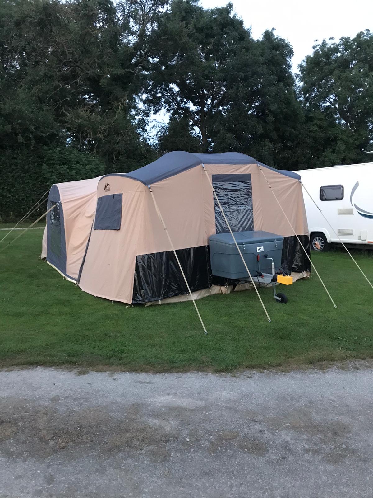 Large family trailer tent, in good condition. Comes with a spacious hooped awning, zipped groundsheet and tailgate kitchen. Luggage rack with an aftermarket 2 bike rack also included. Have the confidence of buying this trailer tent complete with a 12 month guarantee and detailed demonstration on handover.(Ts and Cs apply) |