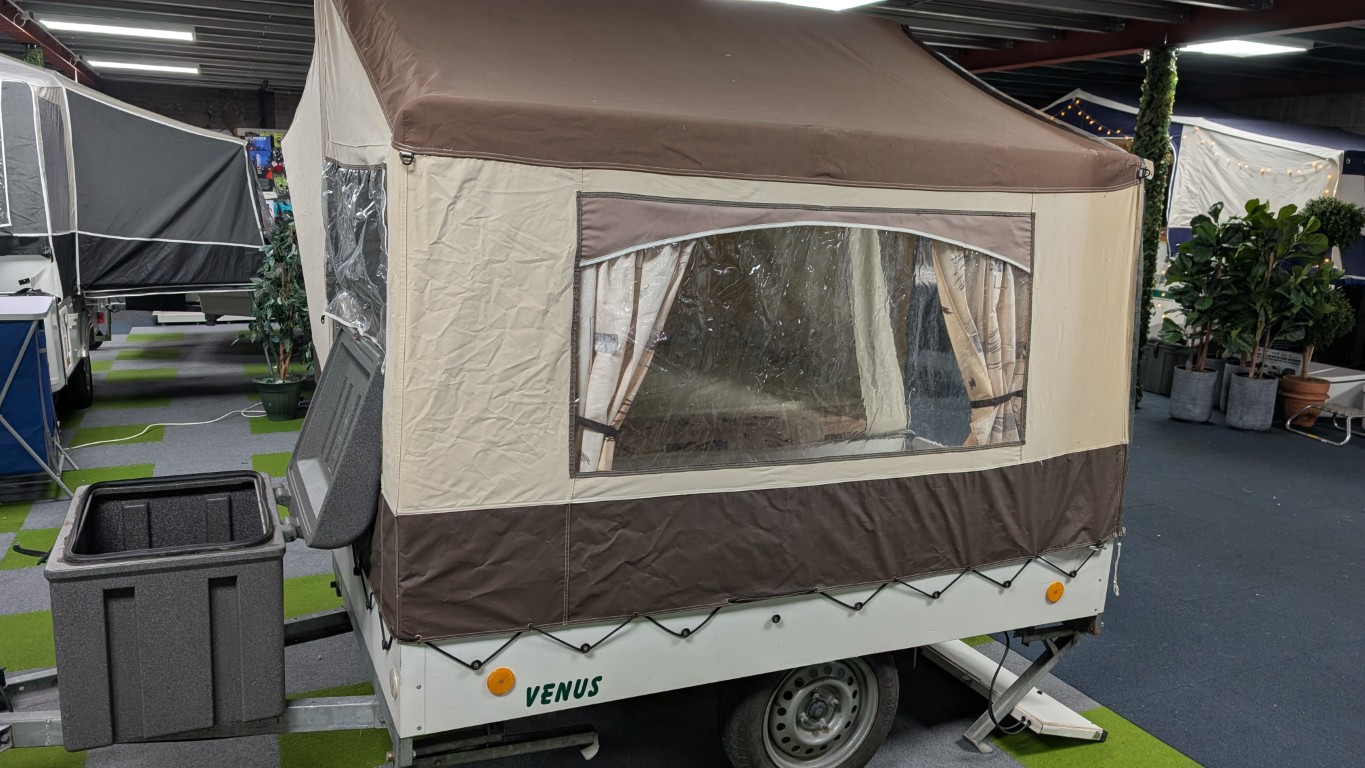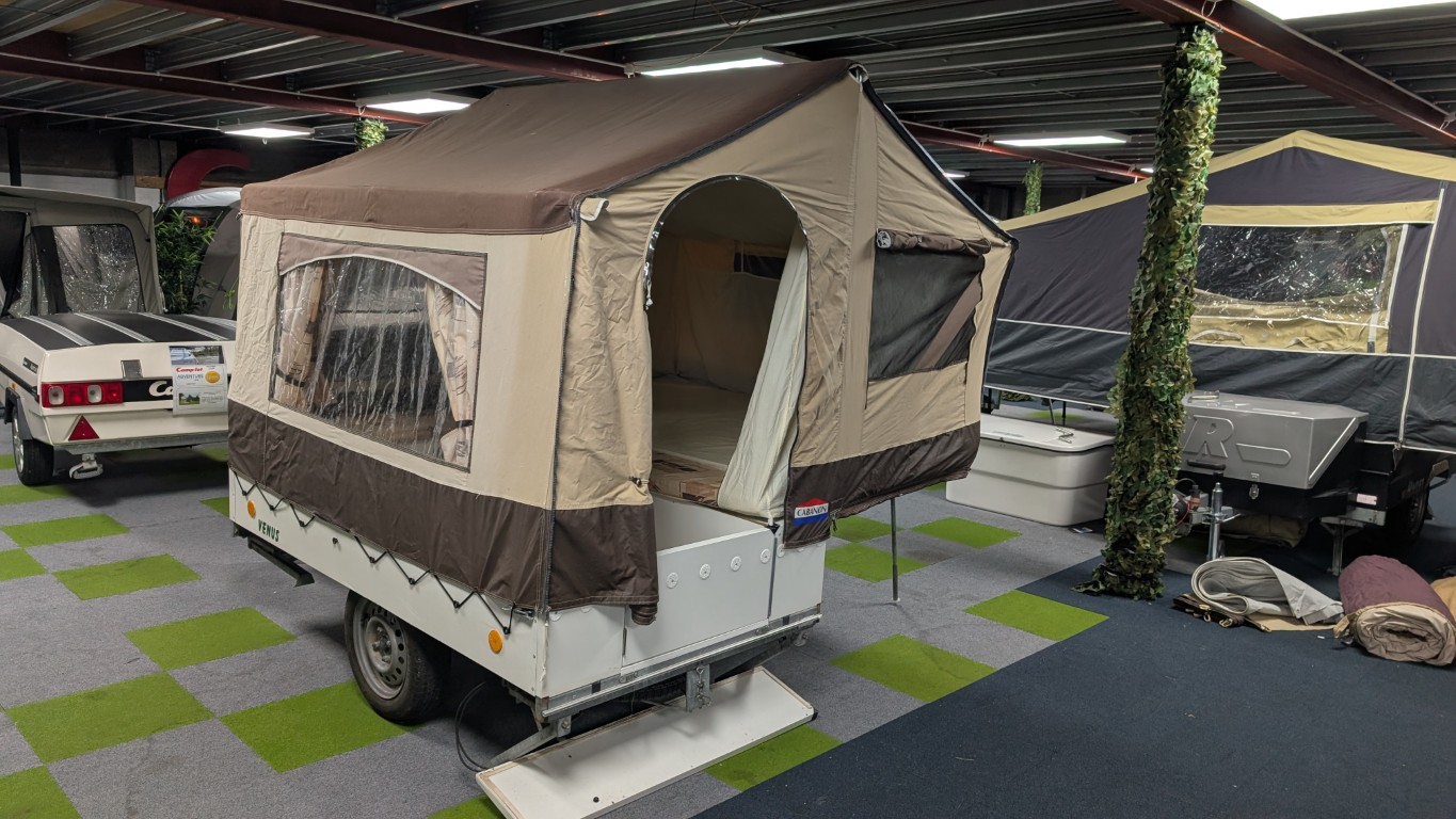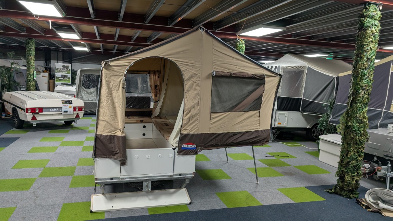 Cabanon Venus now in stock and up on display in our Manchester showroom. The Cabin area you see here is great for solo campers or couples, and sets up in minutes. It also has the full additional awning for a larger enclosed space for longer holidays. Comes with our 12 month warranty as well. Have the confidence of buying this trailer tent complete with a 12 month guarantee and detailed demonstration on handover.(Ts and Cs apply) |