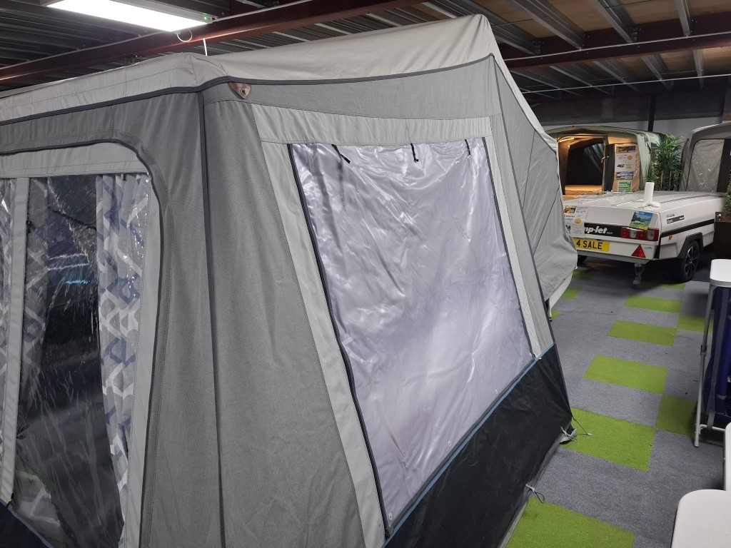Camp-let Dream in great condition throughout, comes with the additional velcro in groundsheet and a winter storage cover. Have the confidence of buying this trailer tent complete with a 12 month guarantee and detailed demonstration on handover.(Ts and Cs apply) |