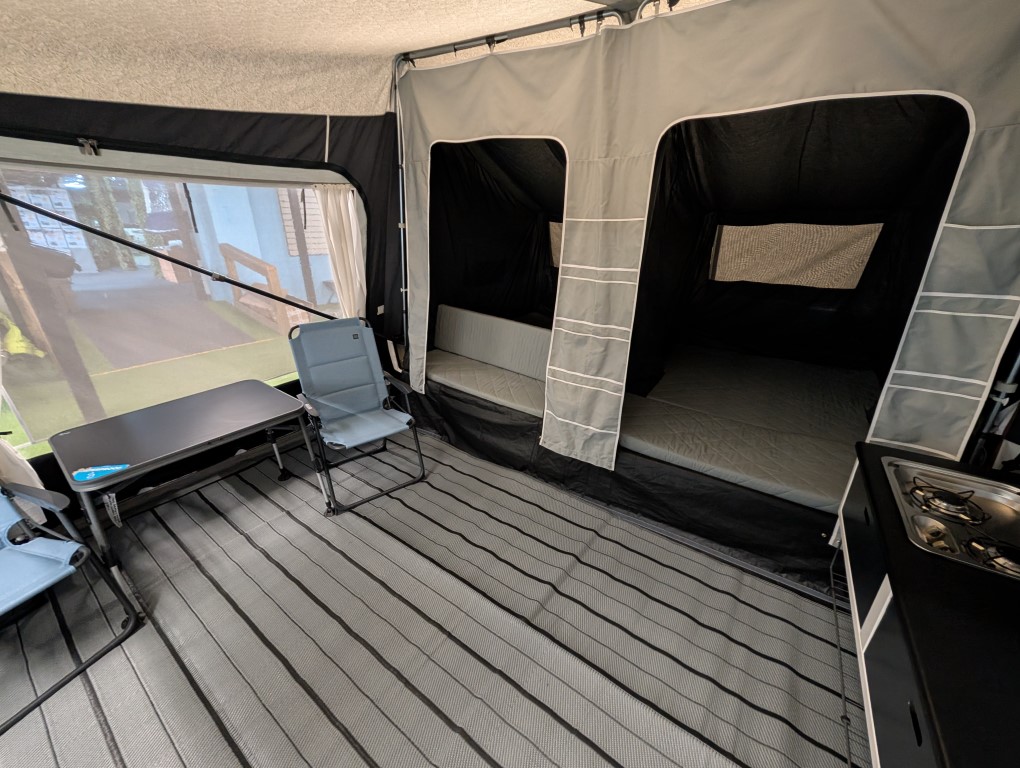 Features + Price includes: Luggage Rack If the above is of interest please contact us prior to travel to avoid disappointment as it may be sold or not on display. trailertents@camperlands.co.uk Tel 0161-902-3020 (Closed Wednesdays). |