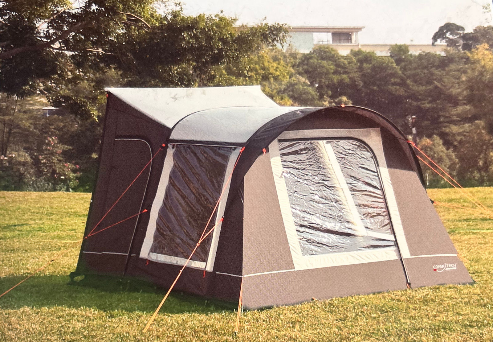 This air driveaway awning is of old stock but has not been used.It has been checked and is complete. With pegs and ladder rubbers and a manual pump. The drive away is for a low vehicle or camper van.