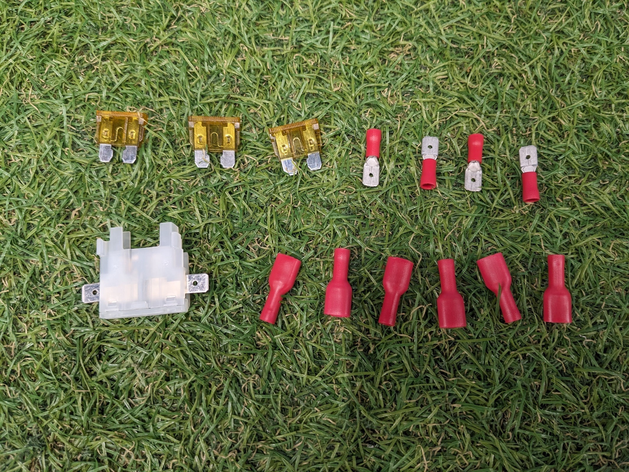 - 6 x Female Insulated Spade Terminal (You get 6 female spade terminals because 2 of them are to connect to the fuse holder which has the male part already fitted)