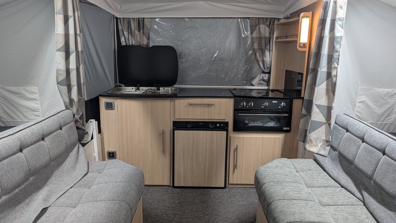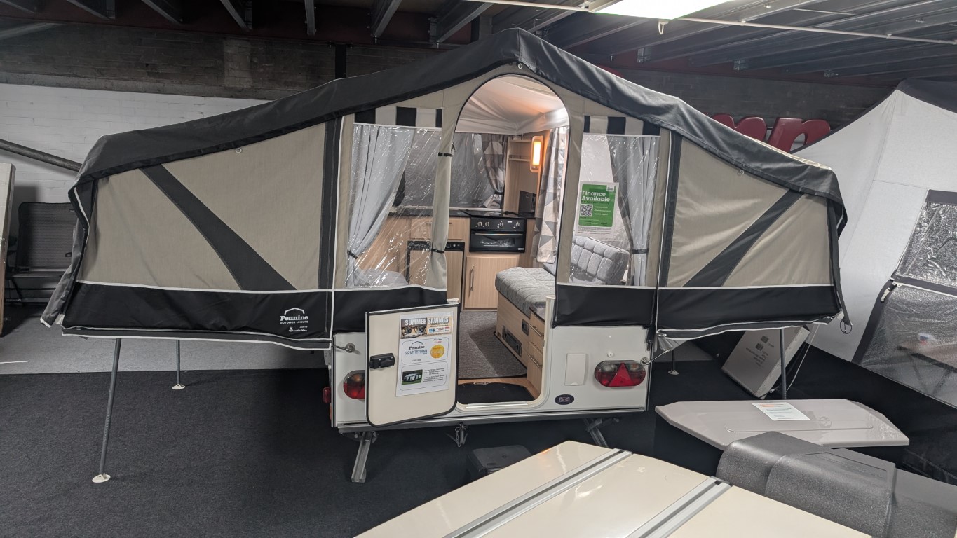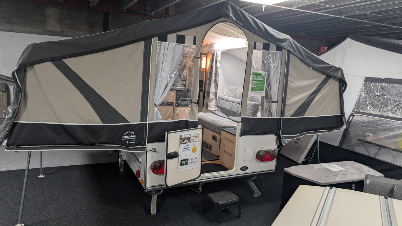 Latest style Countryman with Isabella acrylic canvas. Comes with the full awning and bed skirts. Lot's of extras inside like a hob, grill, fridge, hot and cold running water. Even has a built in heater if you fancy a bit of cold weather camping. Have the confidence of buying this trailer tent complete with a 12 month guarantee and detailed demonstration on handover.(Ts and Cs apply) |