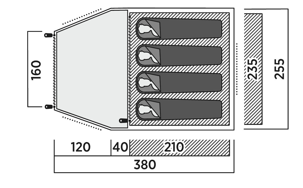 With a pitch time of 12 minutes, the Kinn 4 provides ample space in both the sleeping area and the porch so you have plenty of room for yourselves and your gear.