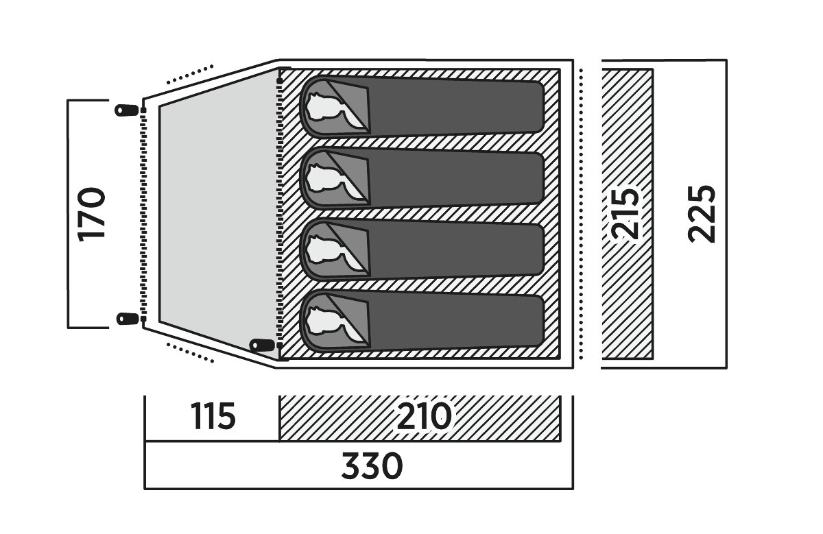 Please note that UV rays can damage your tent if exposed to direct sunlight for longer periods of time, and this effect can be enhanced when camping near to the sea or lakes.