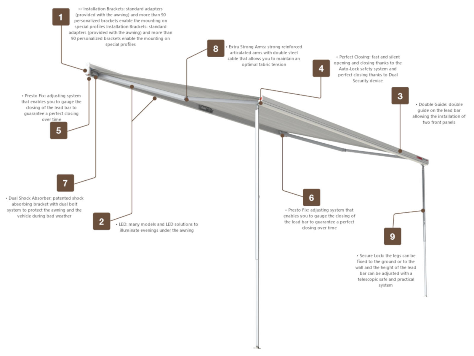 | Awning Projection (cm) How far the awning extends from the vehicle it is mounted to | 250 | |