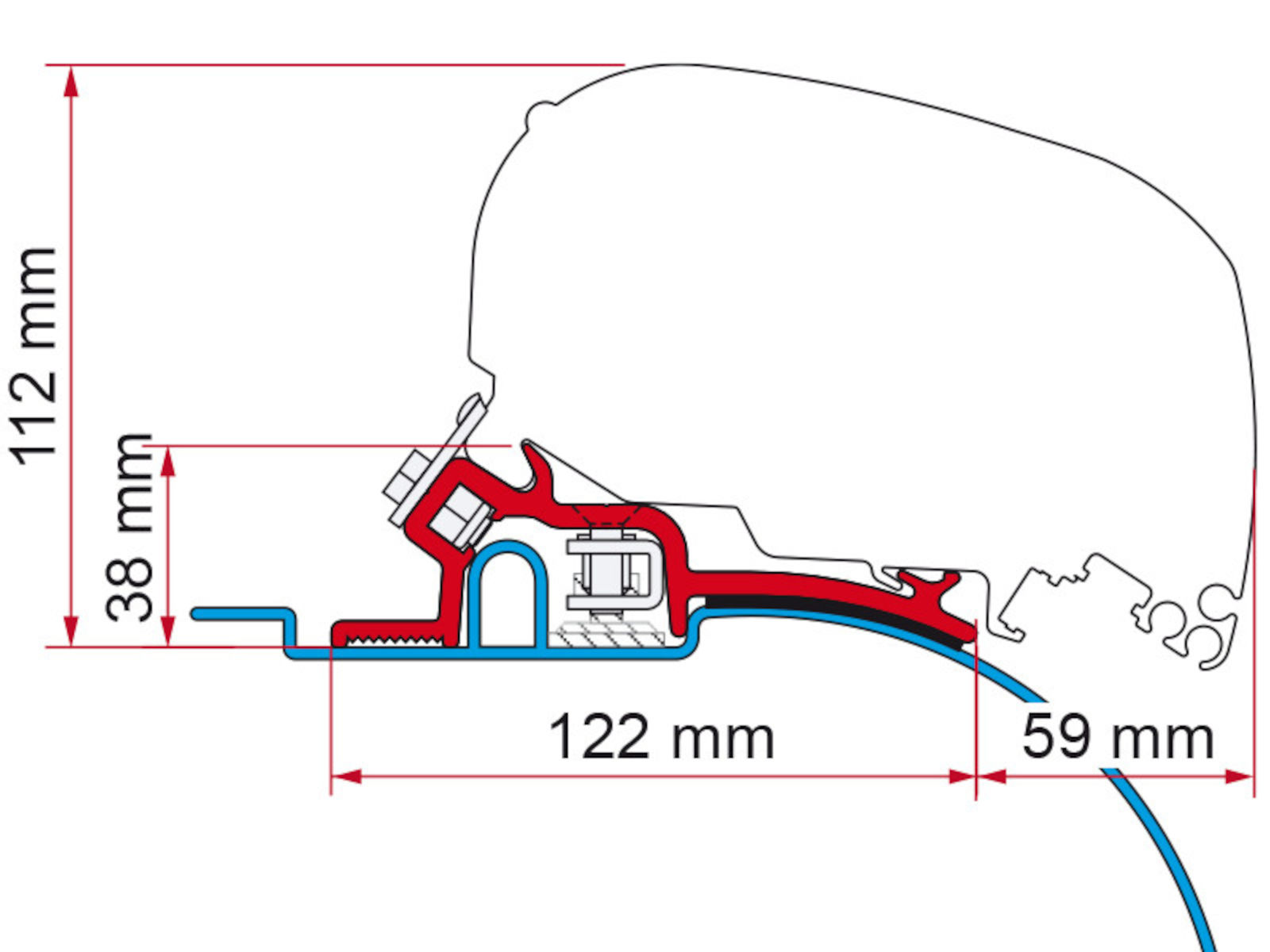 Motorhome awning installation kit for F65 and F65 S awnings. Suitable for high roof Fiat Ducato, Peugeot Boxer and Citreon Jumper from 1994 - 06/2006.