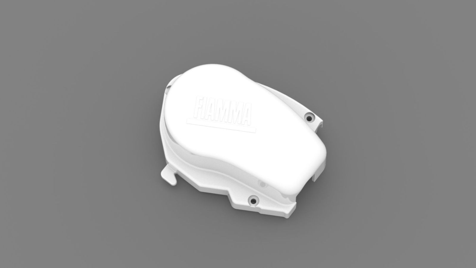 Replacement left hand outer end cap for Fiamma F65 S awning in Polar White colour.
