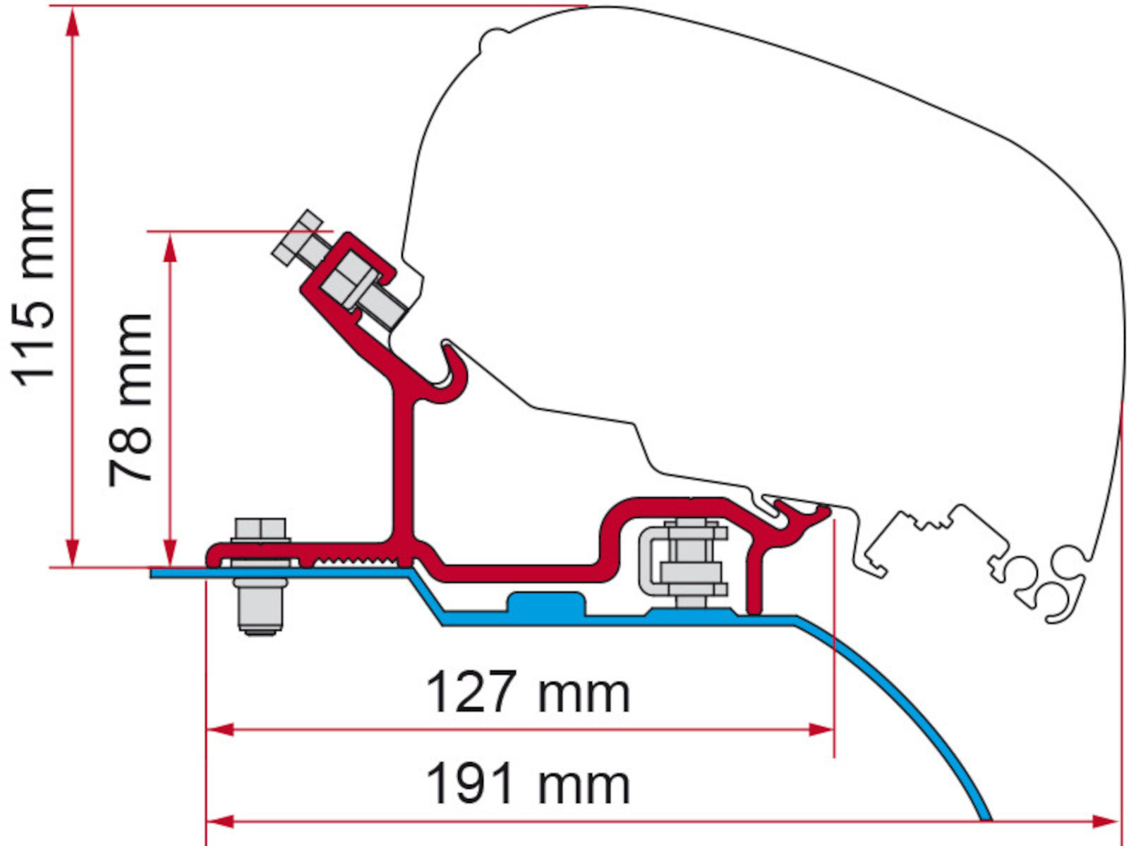 Special Fiamma F65 awning installation kit from Fiamma. Suitable for Fiat Ducato, Citroen Jumper and Peugeot Boxer with H3 high roof from 06/2006 onward.