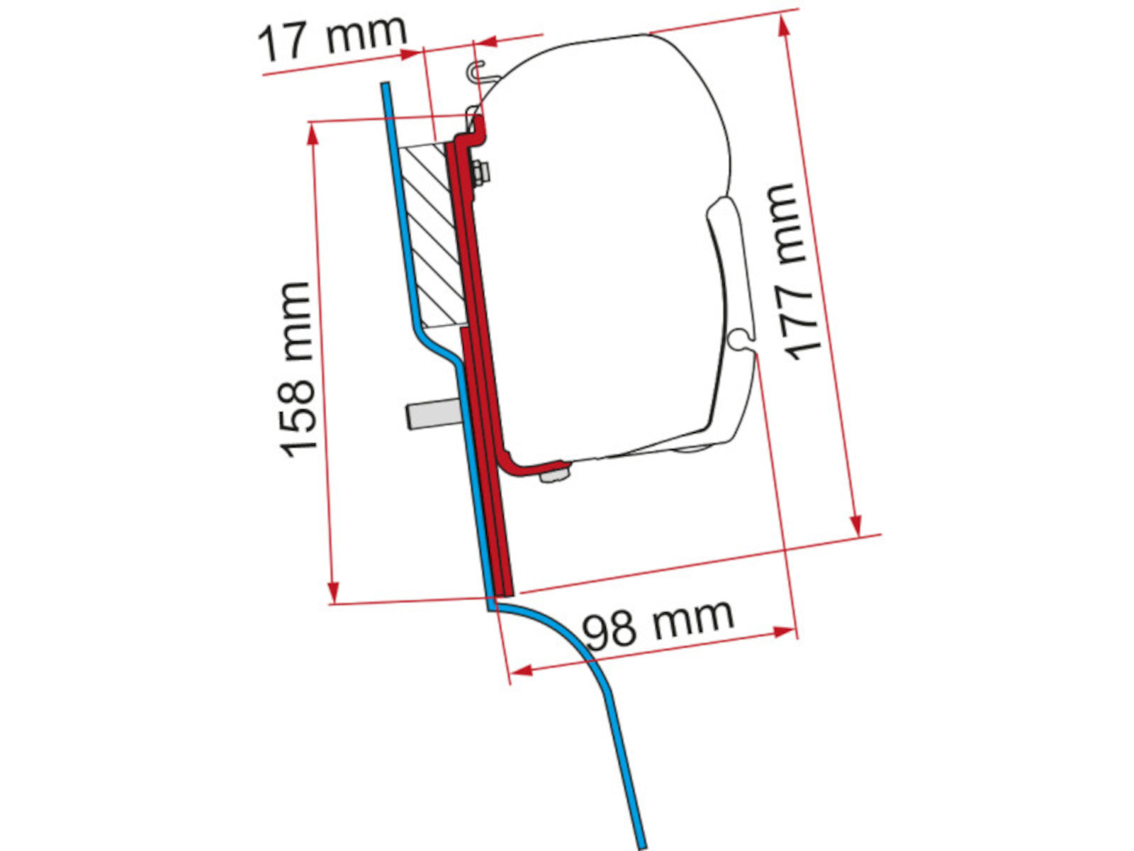 Fiamma awning installation kit for F45 and the new 2024 F43 van awnings suitable for fitting to Westfalia Nugget from 2015 based on Ford Transit Custom.