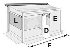 This door panel is for wind-out Fiamma awnings which have a projection of 250cm from the vehicle and is for the medium height variant, which is fitted between 225cm to 250cm from the bottom of the awning case to the ground.