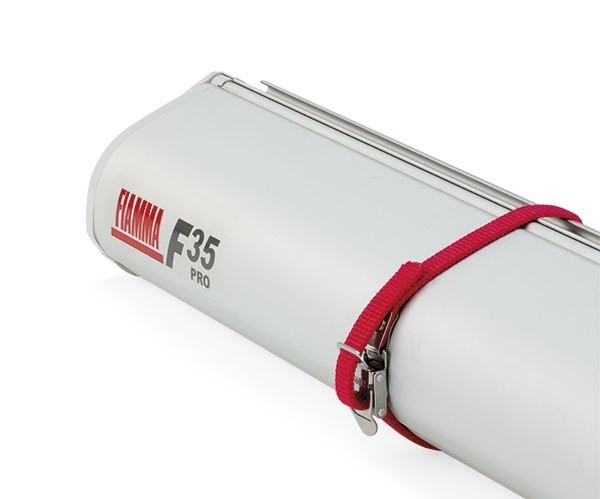 Fabric security strap for Fiamma F35 Pro awning to ensure the awning case remains safely closed when travelling over rough ground.