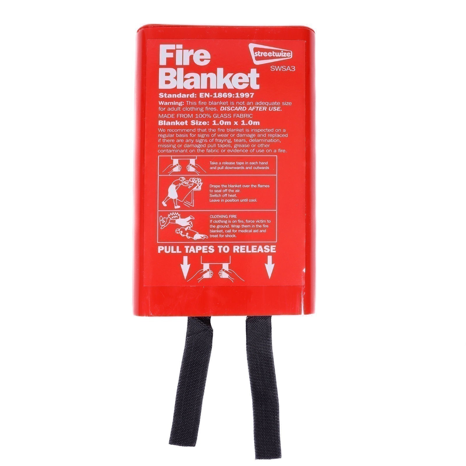 An important tool for fighting kitchen and clothing fires. When pulled from it's container it opens to provide a 1m2 coated surface for extinguishing out of control flames. Ideal for caravans and motorhomes and in the home.