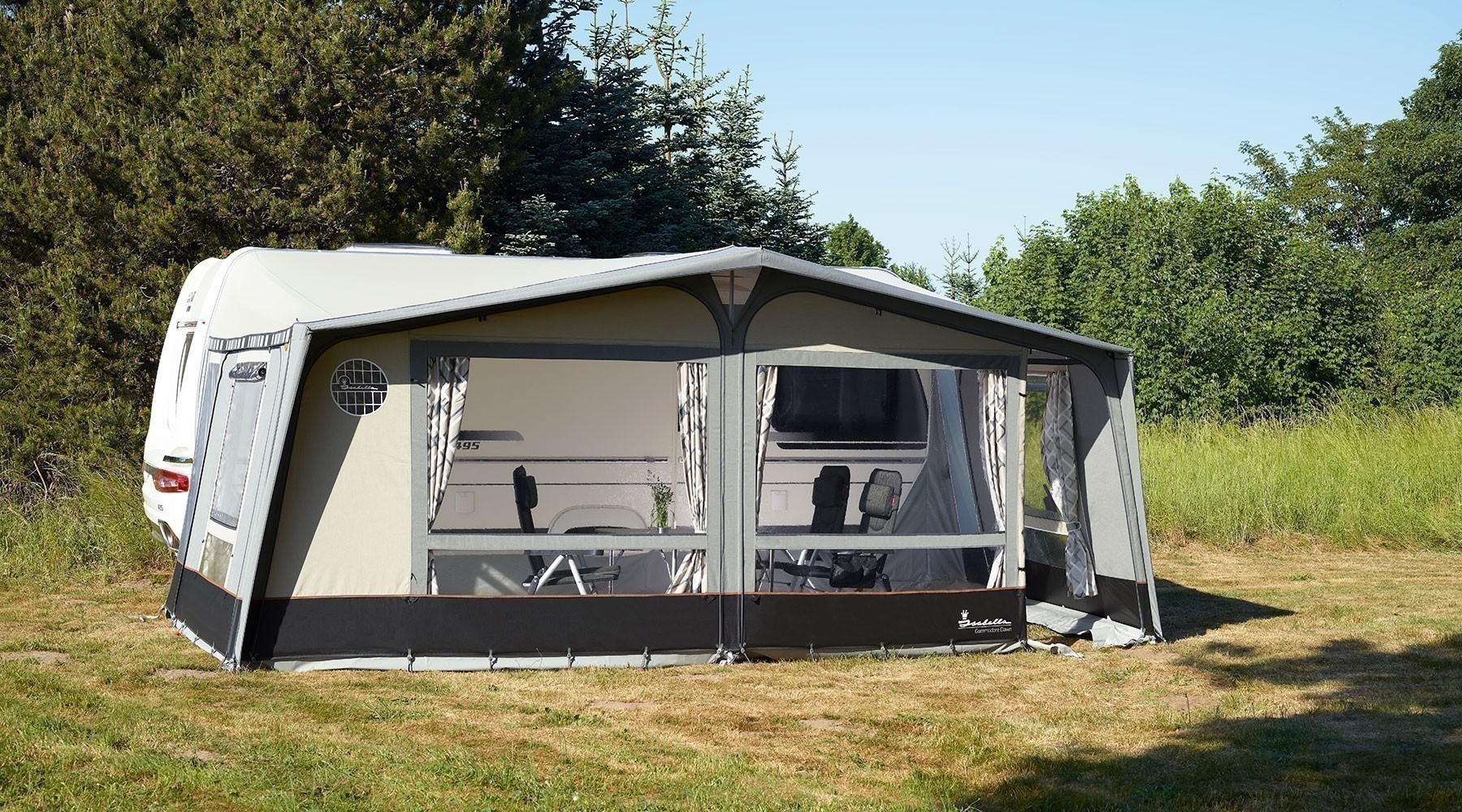 Commodore is a fusion of classic Isabella design and contemporary materials. Its depth of 3 metres and the choice of three types of frames are a major advantage, especially for those who alternate between permanent pitching and touring and enjoy having plenty of space in the awning.