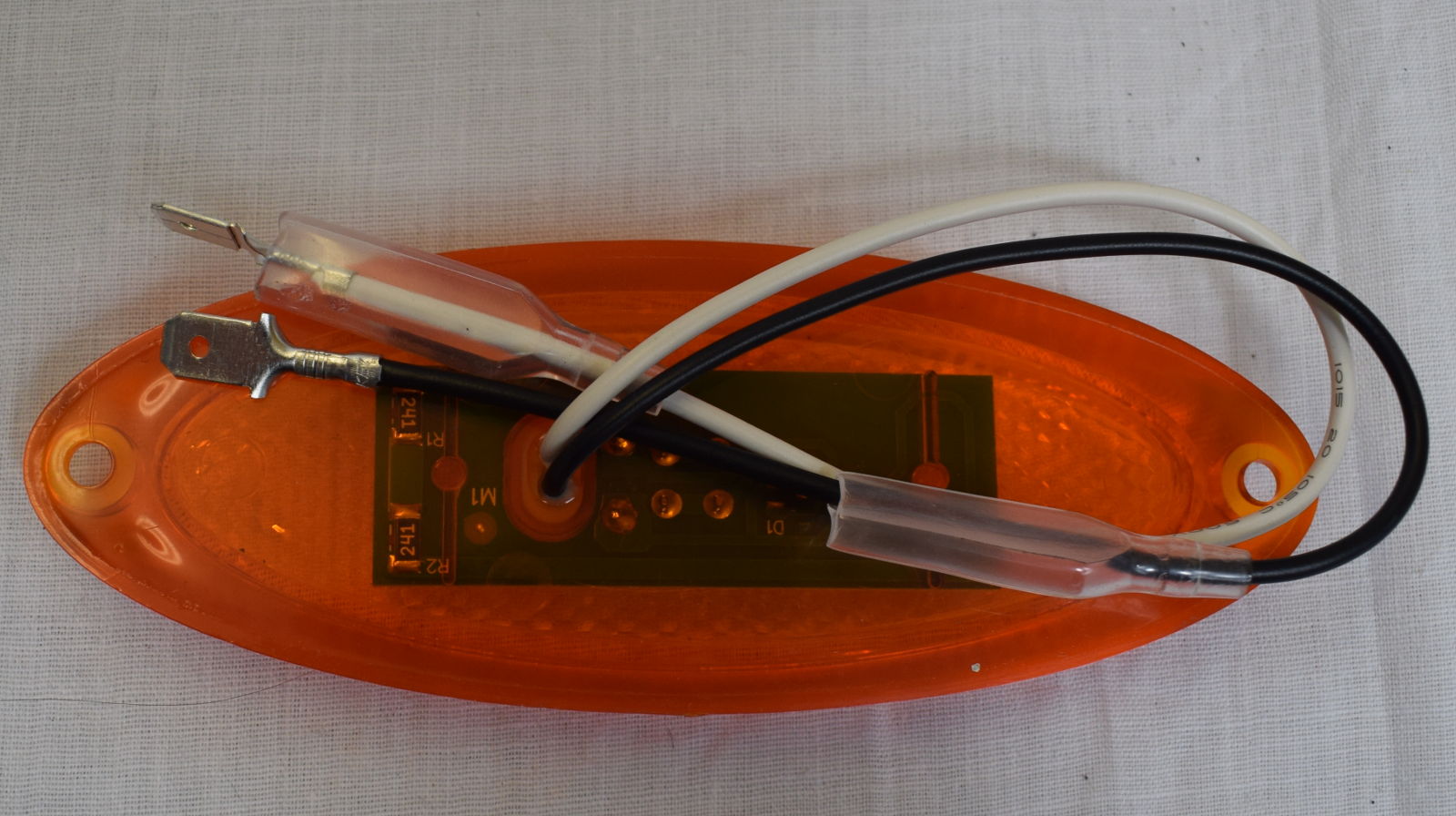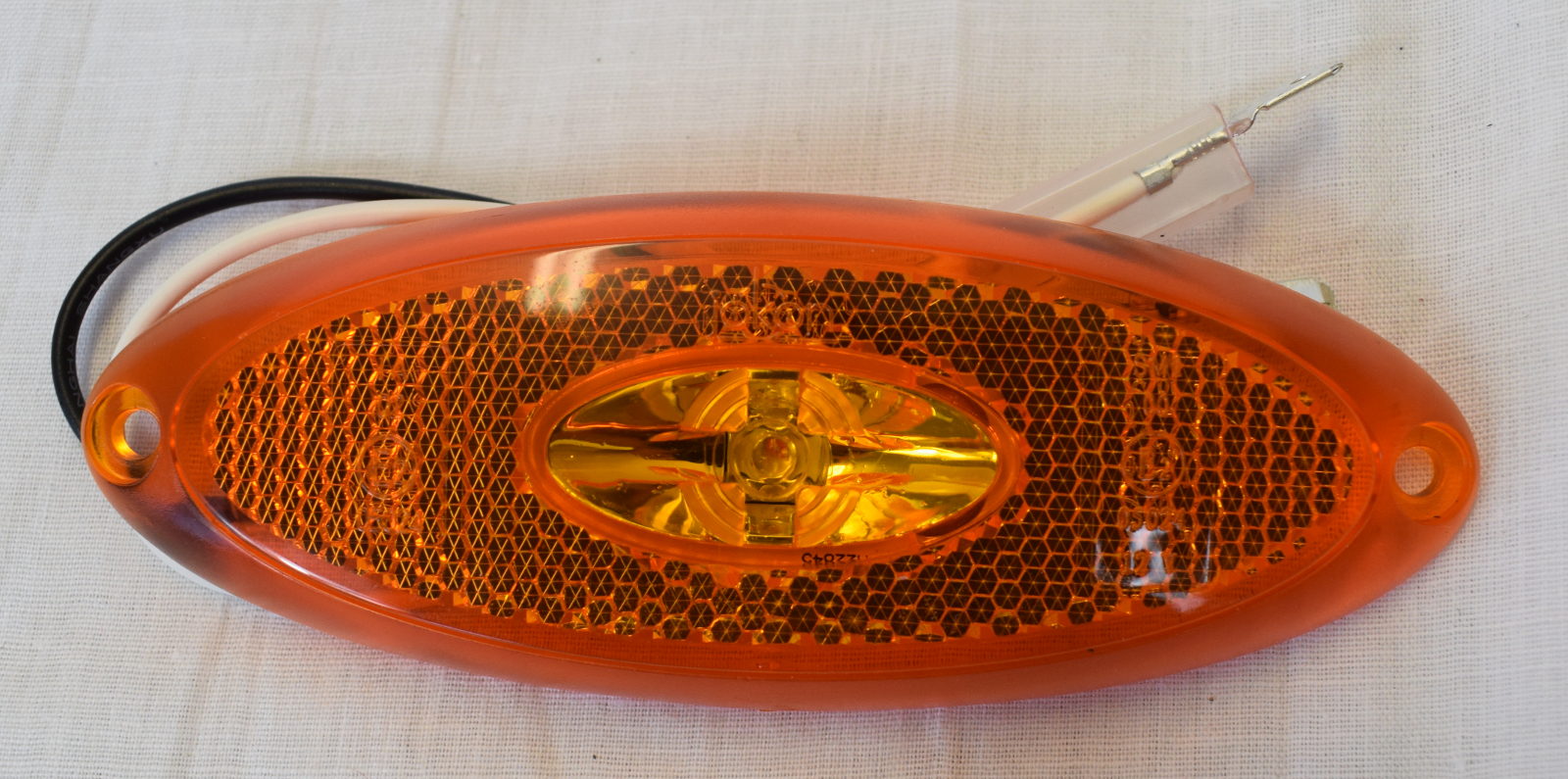 E2 LED slimline side marker light with 20cm cable and 6.3mm male spade connectors. Suitable for motorhomes, trailers and caravans.