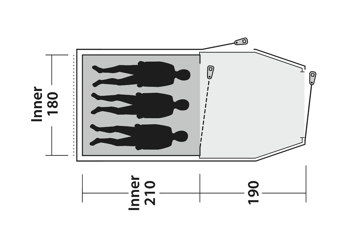 The Outwell Earth 3 Plus is a 3 berth poled tunnel tent with integrated groundsheets for both the porch and living area is a compact and lightweight option for those looking to maximise comfort, reliability and performance on their hiking or biking trips.