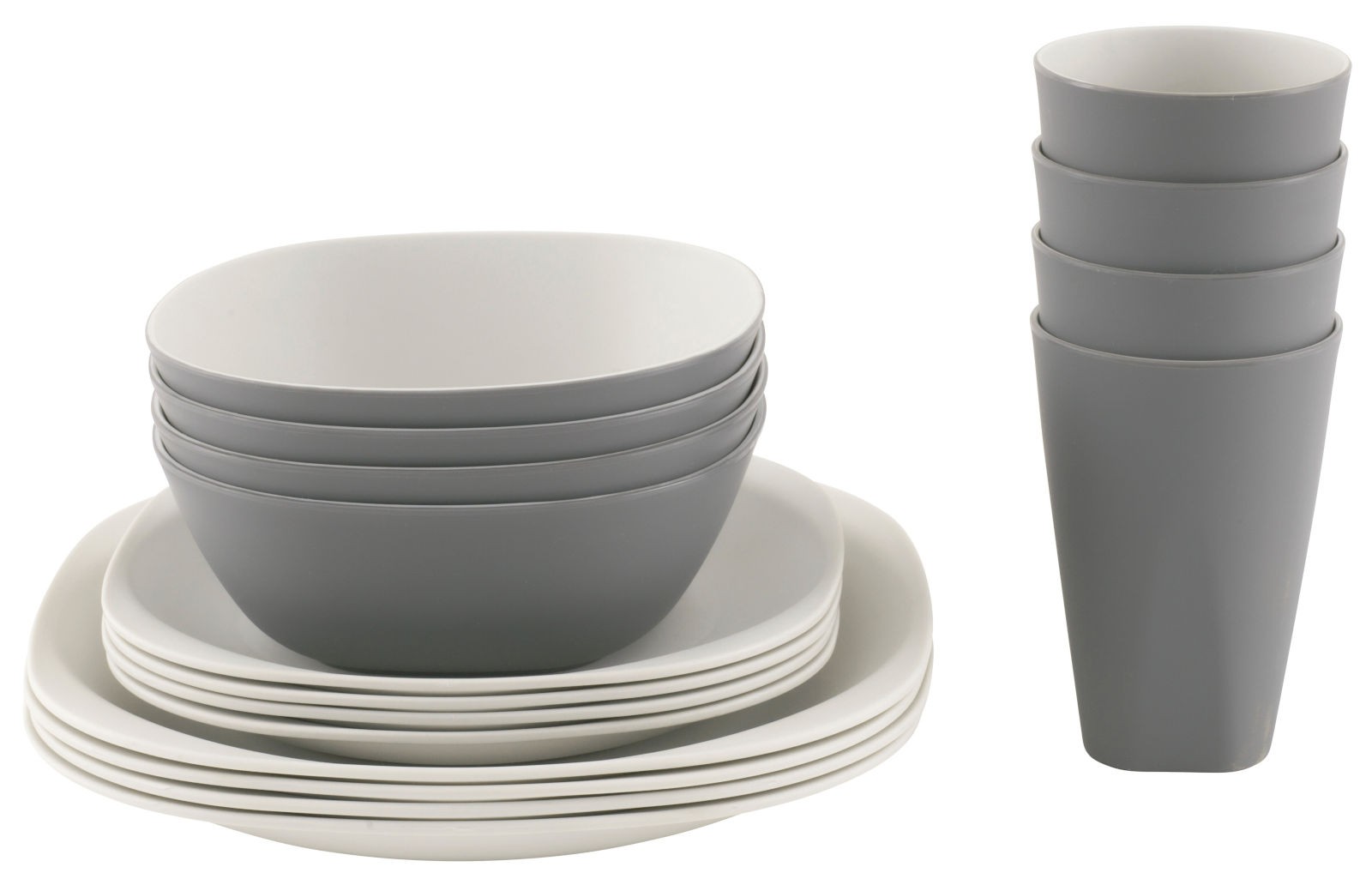 The Outwell Gala 4 is a 4 person dinner set which is made up from 16 pieces of tableware. It is made from Polypropylene which is lightweight and is dishwasher safe and microwavable safe up to 100°.