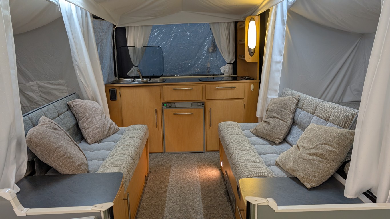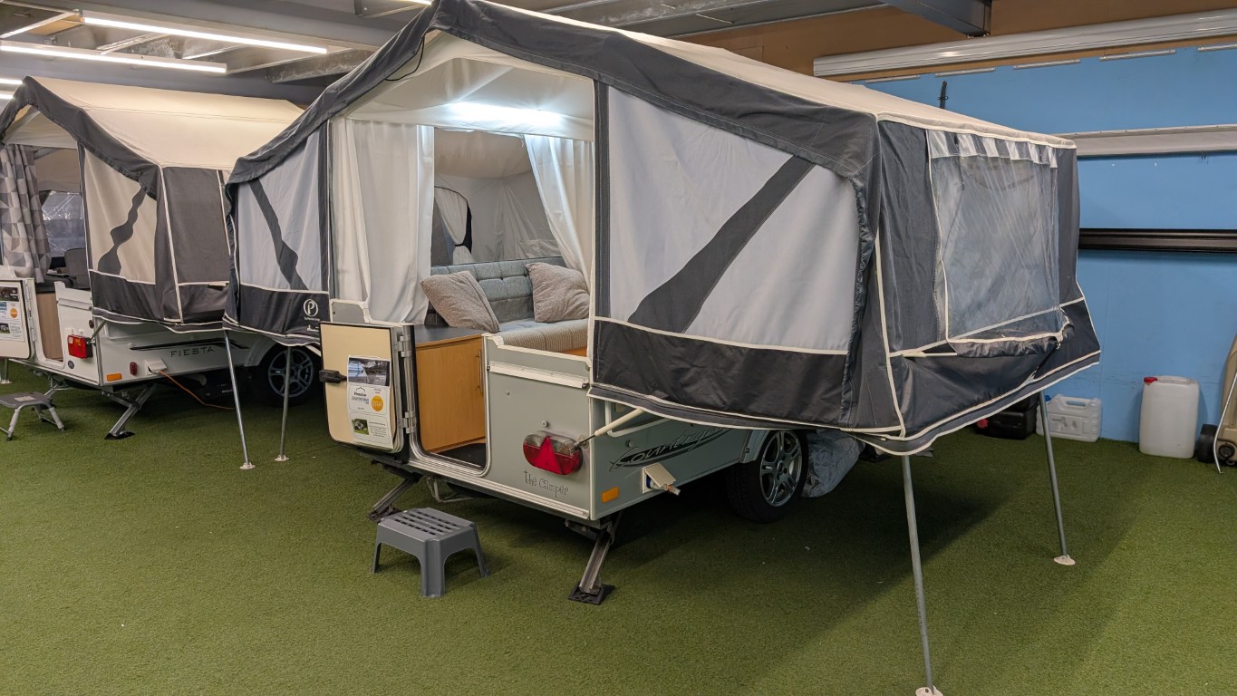 We have a 2009 Pennine Countryman now in stock and up on display in our Manchester showroom. The cabin area you see here sets up in minutes by folding the beds over and out of the trailer, and don't forget the full awning that's included as well. Inside the cabin you'll find home comforts like 2 double beds, fitted kitchen and fridge, and even a floor level heater. Wrap this up with our 12 month warranty, and you're good to go camping! Have the confidence of buying this trailer tent complete with a 12 month guarantee and detailed demonstration on handover.(Ts and Cs apply) |