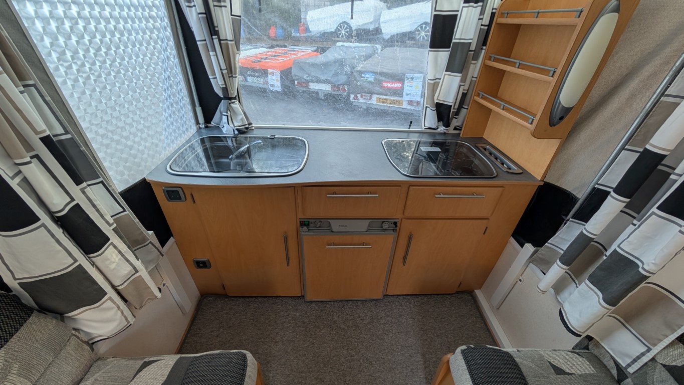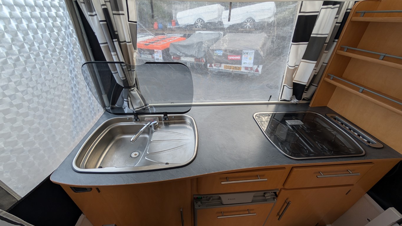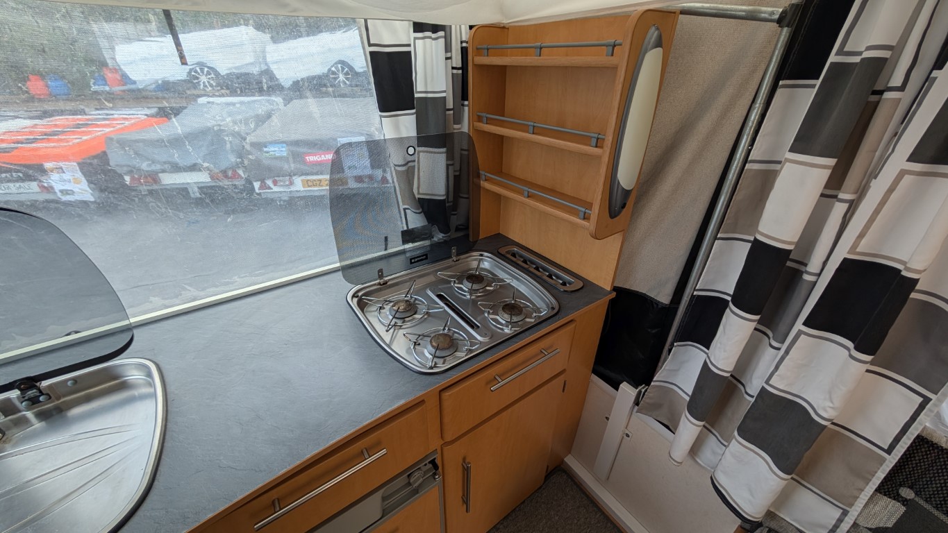 Previous generation Countryman with the silver body. All in very good condition, and comes with the extension awning on the front. Fitted kitchen inside with hob, sink and grill. 2 Large double beds as well. Have the confidence of buying this trailer tent complete with a 12 month guarantee and detailed demonstration on handover.(Ts and Cs apply) |