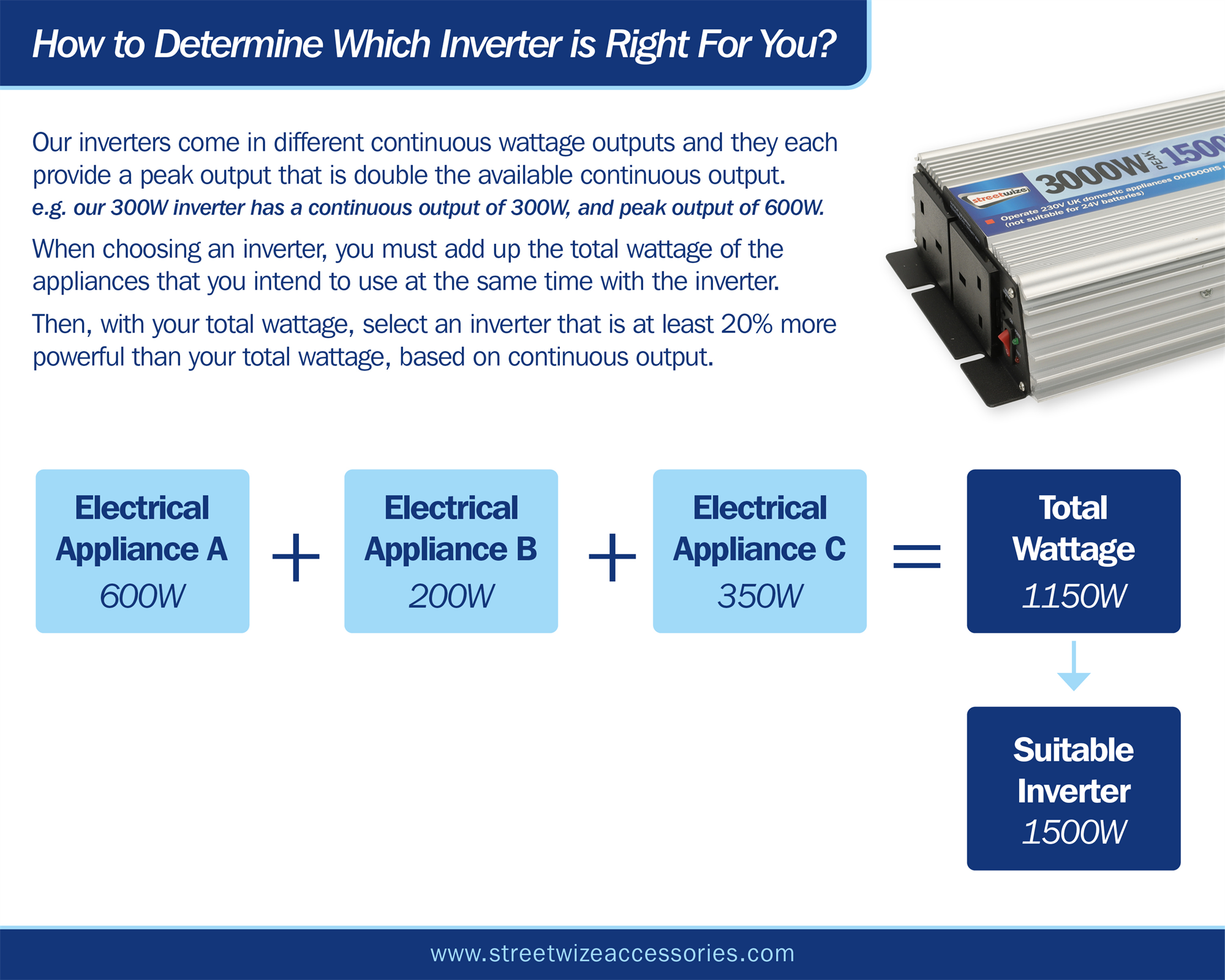Please note, inverters should be purchased based on continuous power. The peak power output only lasts for a limited time.