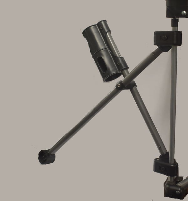 2 swivelling clamps attach securely to the tubes of the chair frame at any angle and are adjustable to fit to chair tubes up to 27mm diameter. Sturdy, wide base foot rests on the ground for extra stability.