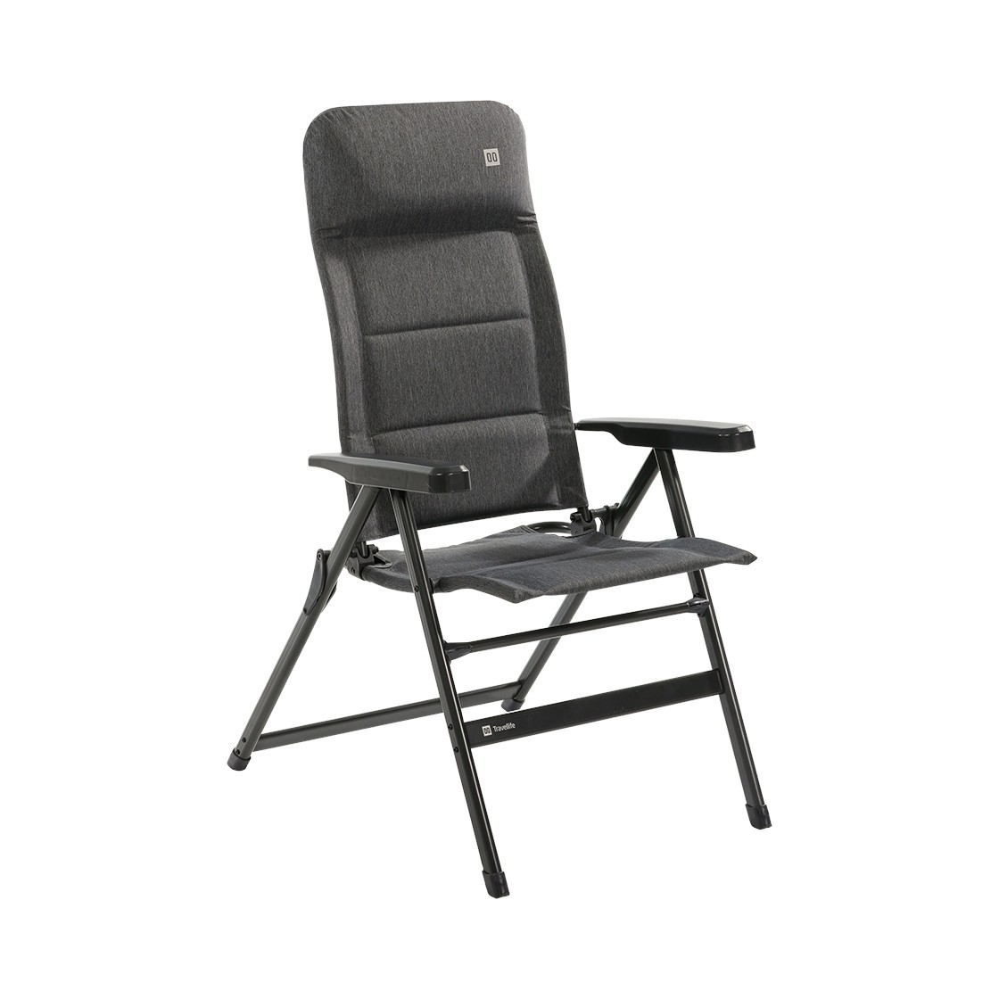 With the Travellife Lago recliner comfort, you benefit from a lightweight aluminium frame and a slim design. These features make the chair ideal to take with you and transport in your camping vehicle, where it takes up little space. Want to sit and eat at the table with the camping chair or stretch out and enjoy the sun? It's all possible with the Lago recliner! The backrest of the chair is adjustable to no less than seven different positions. At the same time, you enjoy excellent seating comfort, thanks to the comfortable padding. The adjustable camping chair has a weight capacity of 120 kg.