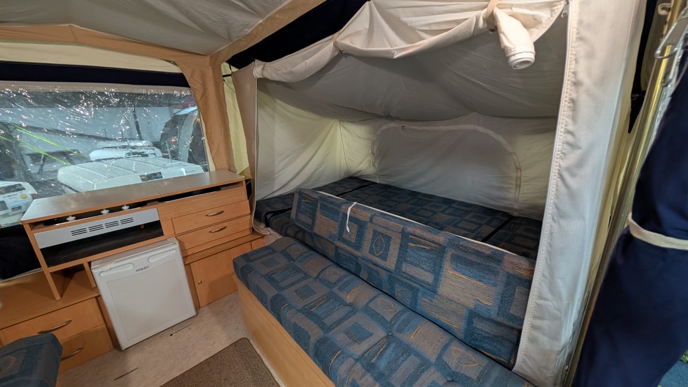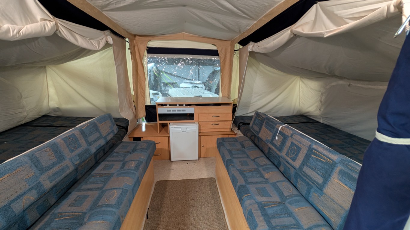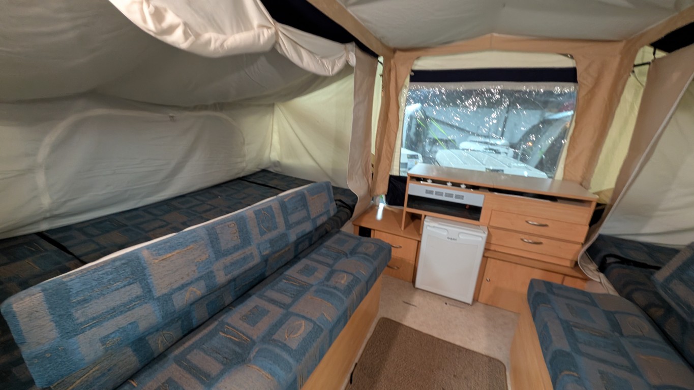 Previous style camper to the Pennine's of today. When released this was a direct competitor to the well known Conway/Pennine Countryman. It has that simple to open cabin, spacious awning which can be added on, and the large kitchen area with fitted fridge. Have the confidence of buying this trailer tent complete with a 12 month guarantee and detailed demonstration on handover.(Ts and Cs apply) |